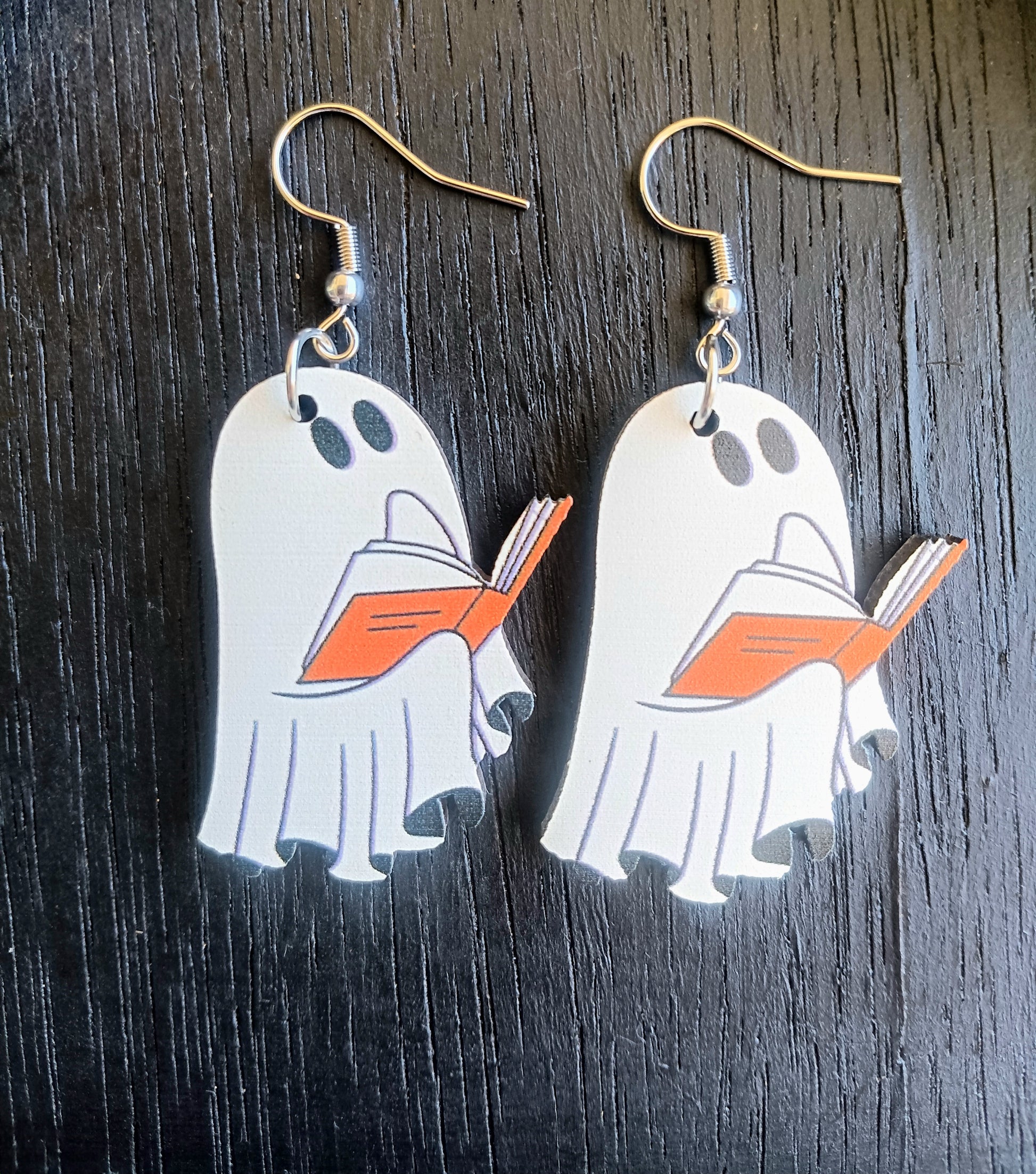 These Adorable Bookclub Ghost Earrings are the perfect accessory for book lovers. Made of wood with a orange book design, they adds a touch of whimsy and charm to any outfit. Delightful and unique, these earrings will be a conversation starter, making you the envy of all your fellow book lovers this Halloween.