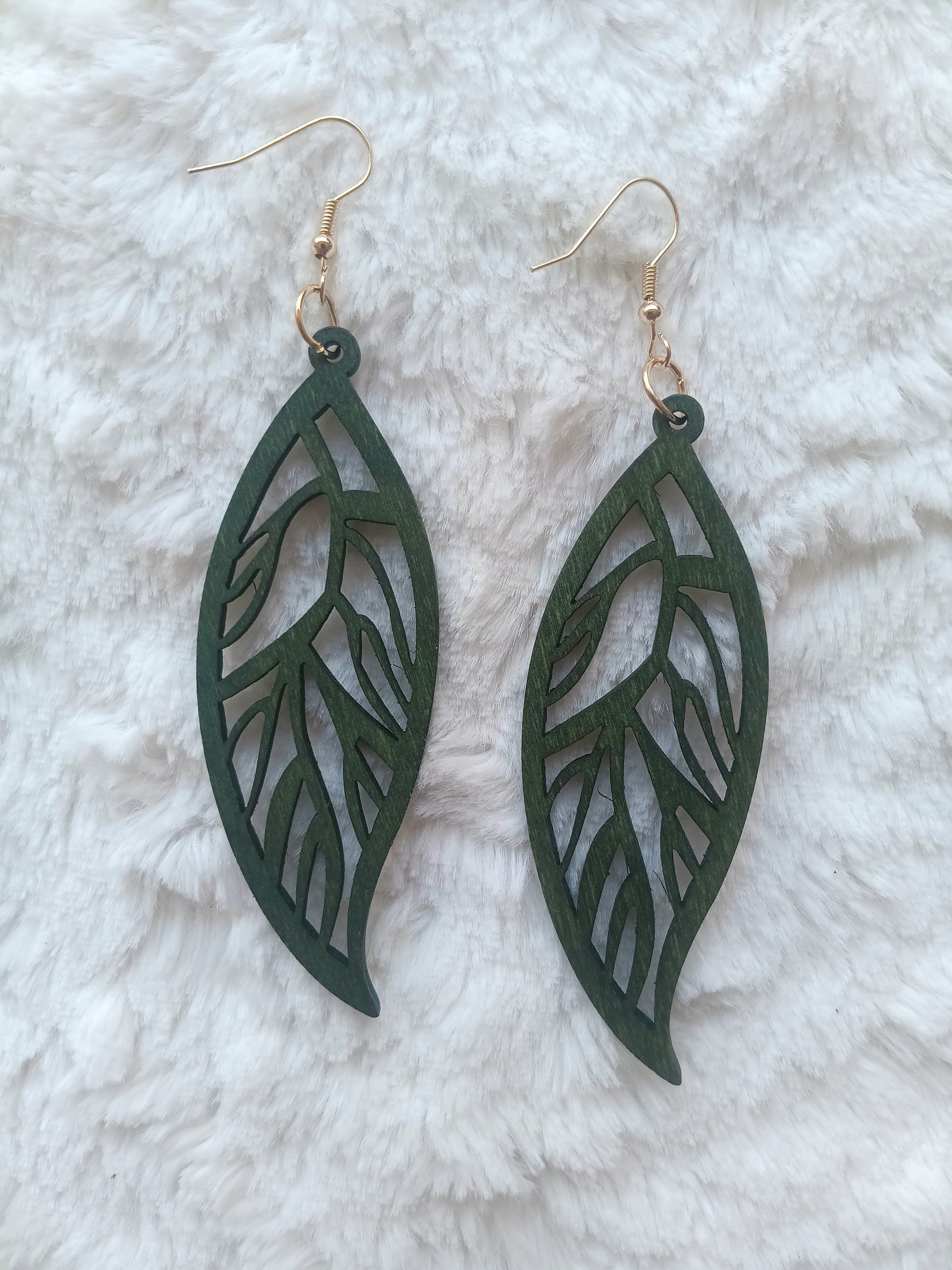 Beautiful Bohemian Wood Carved Leaf Earrings