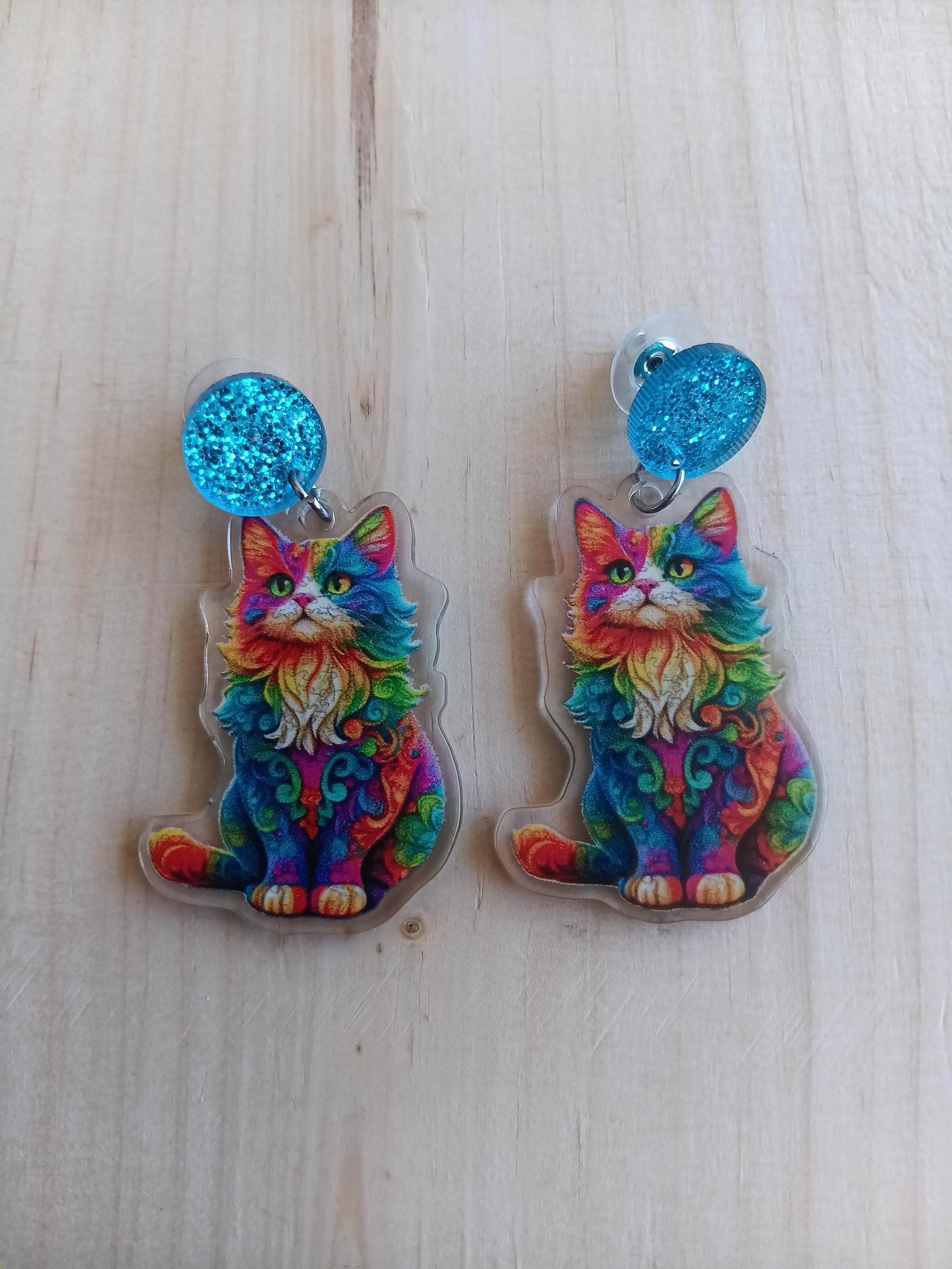These Beautiful Acrylic Bright Kitty Stud Earrings will add a touch of sparkle and charm to any outfit. These earrings are both stylish and durable. Perfect for any cat lover or anyone who loves unique and beautiful accessories. Handmade