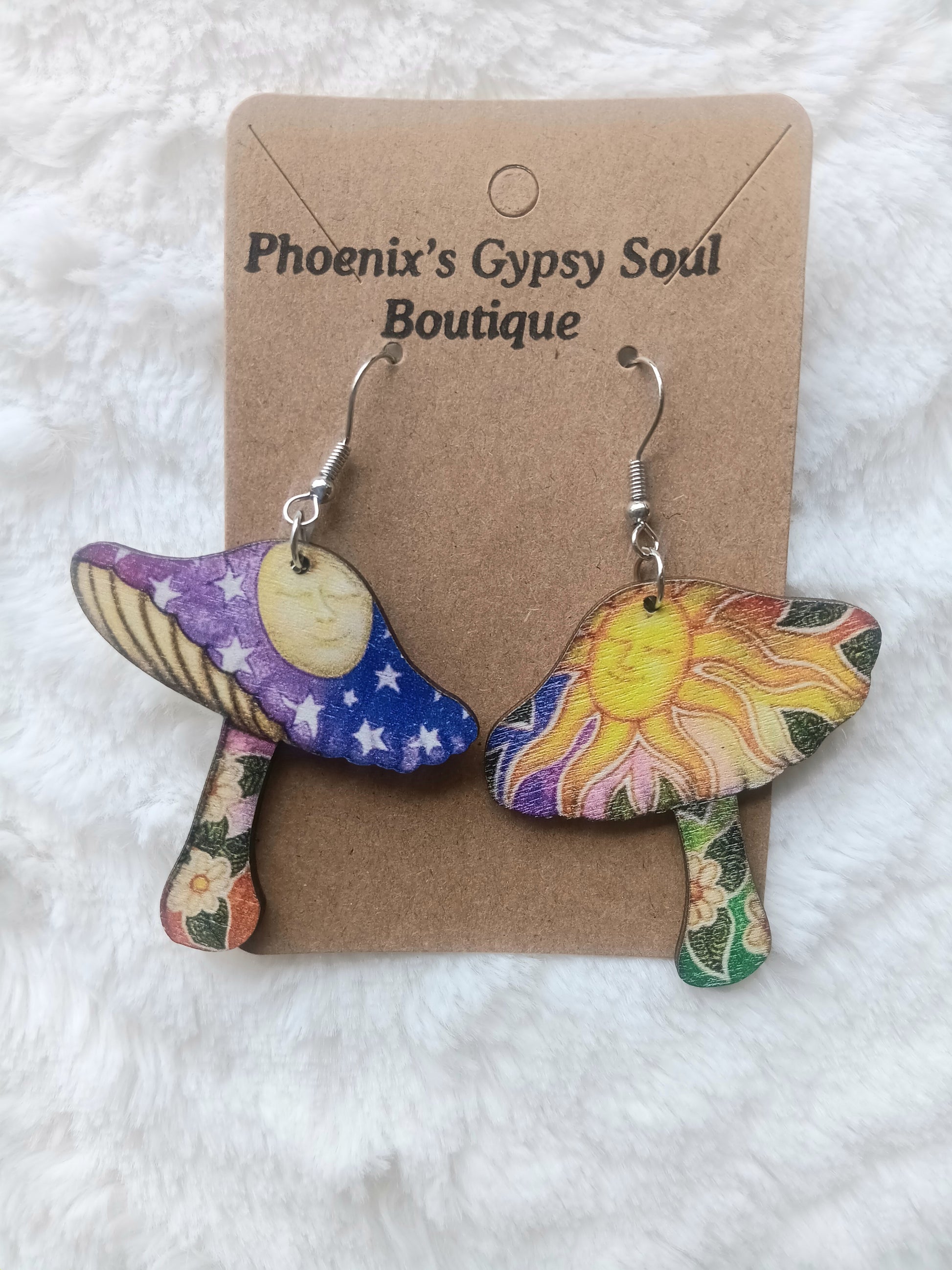 Unleash your inner free spirit with our Fun Bohemian Moon & Sun Mushroom Earrings. These unique wooden earrings add a touch of whimsy and charm to any outfit. Feel the warmth of the sun and the magic of the moon with every wear. Perfect for anyone seeking a fun and bohemian style!