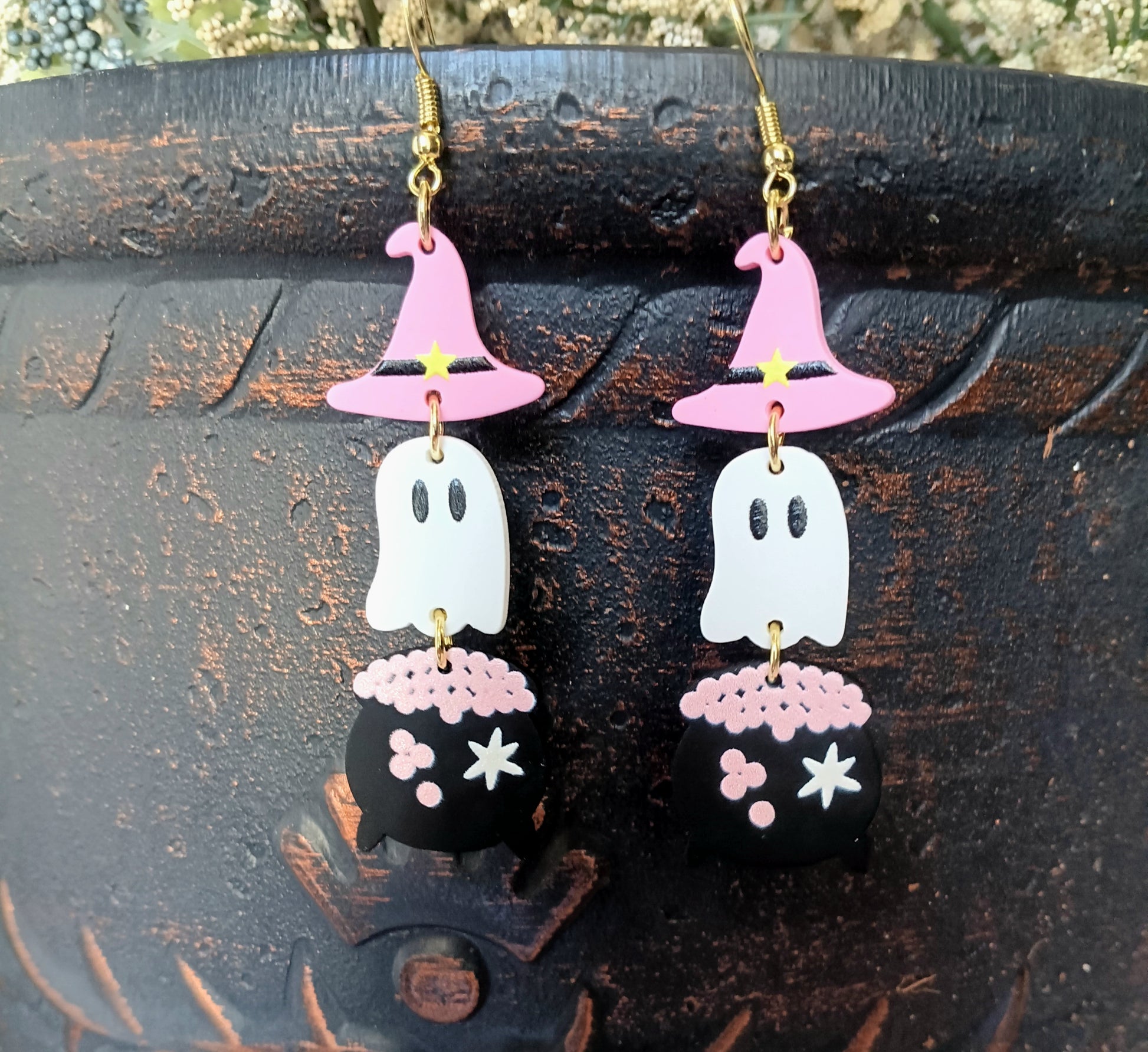 Cute Dangle Witchy Hat Ghost Earrings
