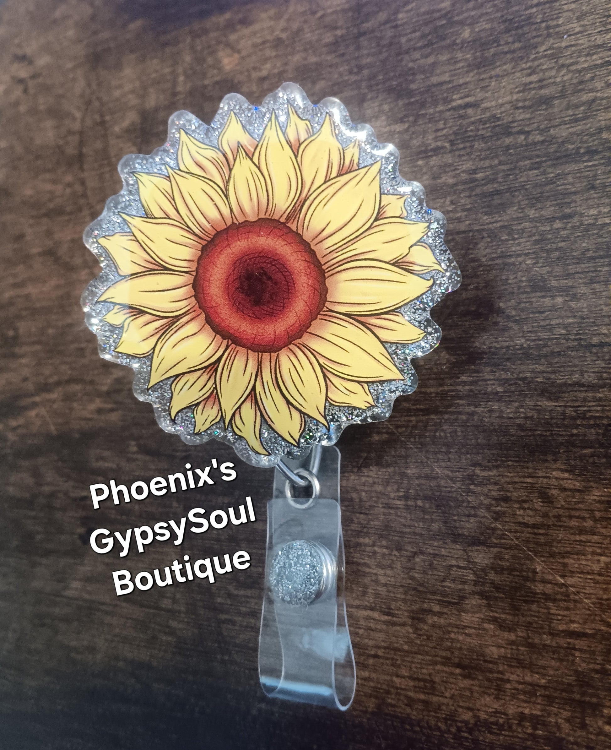Cute Silver Sunflower Badge Reel Retractable ID holder Interchangeable