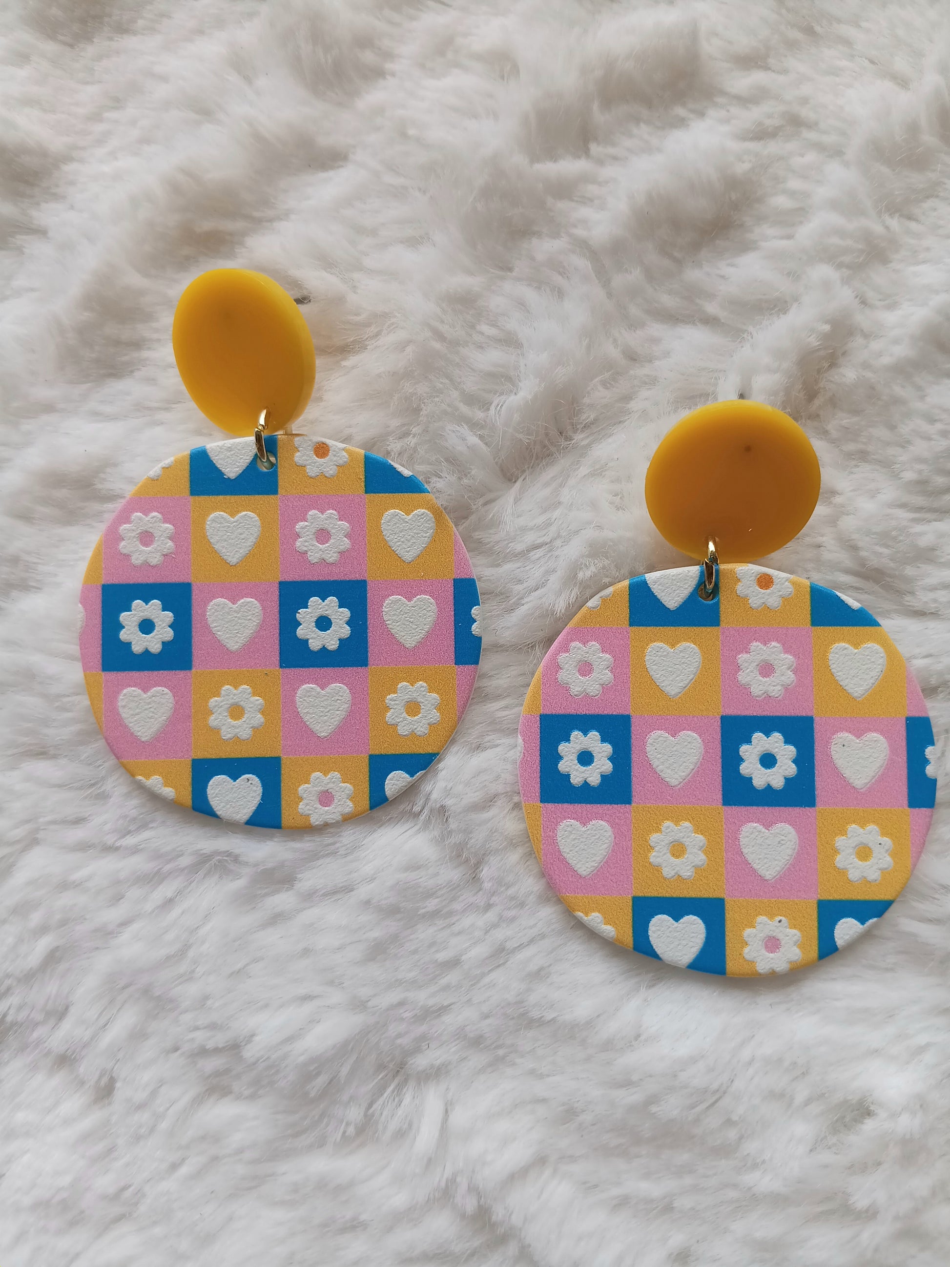 Floral Heart Multicolored Acrylic Dangle Studs
