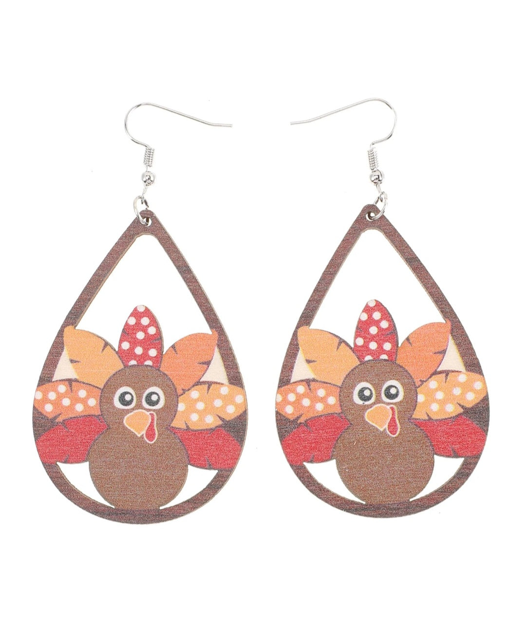 Get into the Thanksgiving spirit with our Laser Cut Wooden Turkey Earrings. The intricate design and unique materials create a festive and playful look, perfect for any holiday celebration.