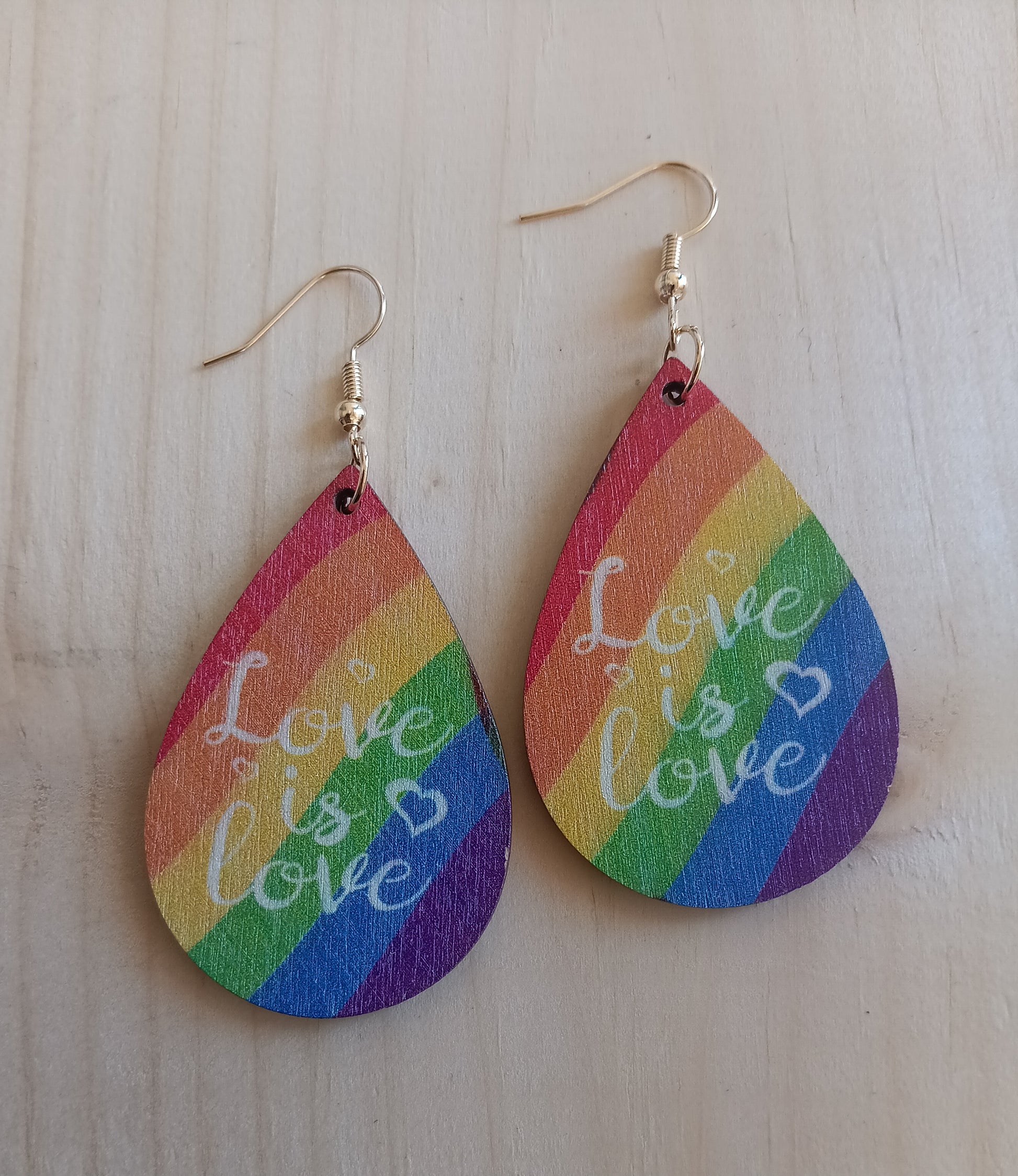 Experience love and pride with our Love is Love Rainbow Earrings. Made with wood, these lightweight earrings are perfect for showing your support during Pride Month. Spread love and equality with these beautiful and meaningful earrings.