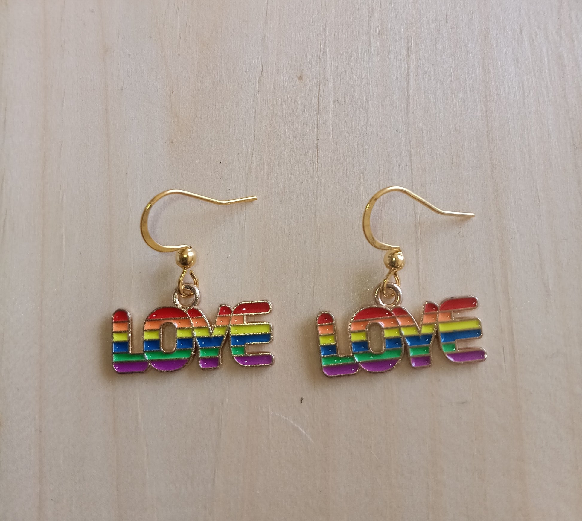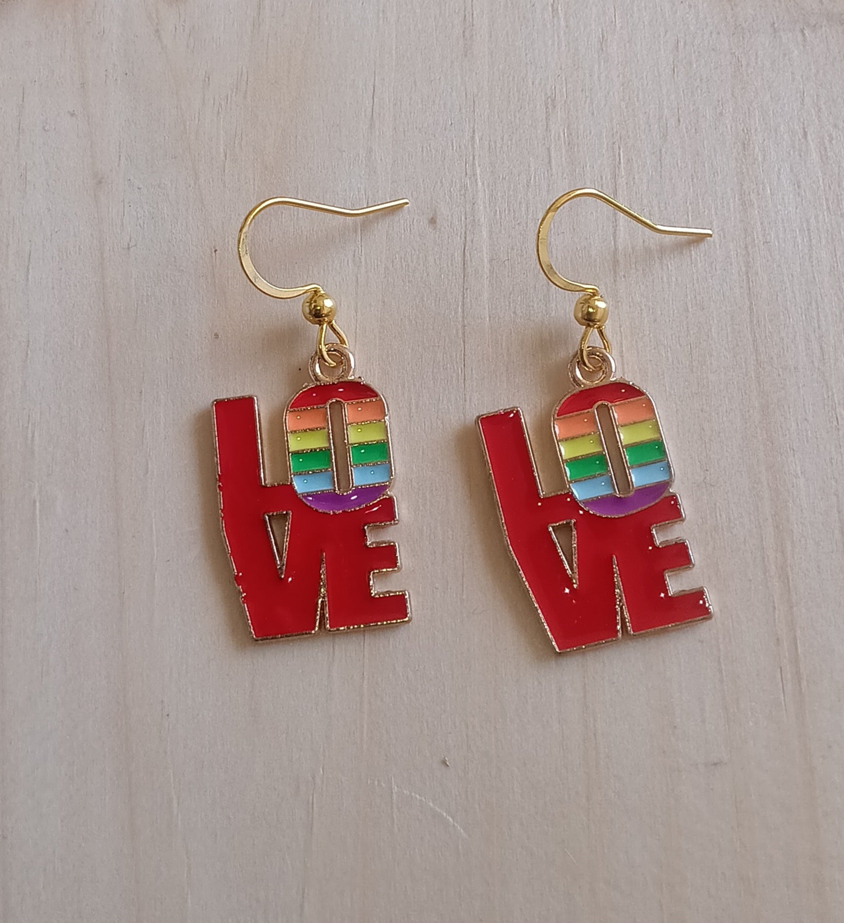 Expertly crafted for Pride Month, these Rainbow Love Dangle Earrings showcase alloy charms and hypoallergenic stainless steel hooks that are perfect for those with sensitive ears. Embrace the love with these unique and stylish earrings.