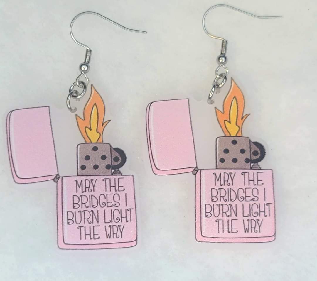 Sarcastic May the Bridges I Burn Acrylic Lighter Earrings