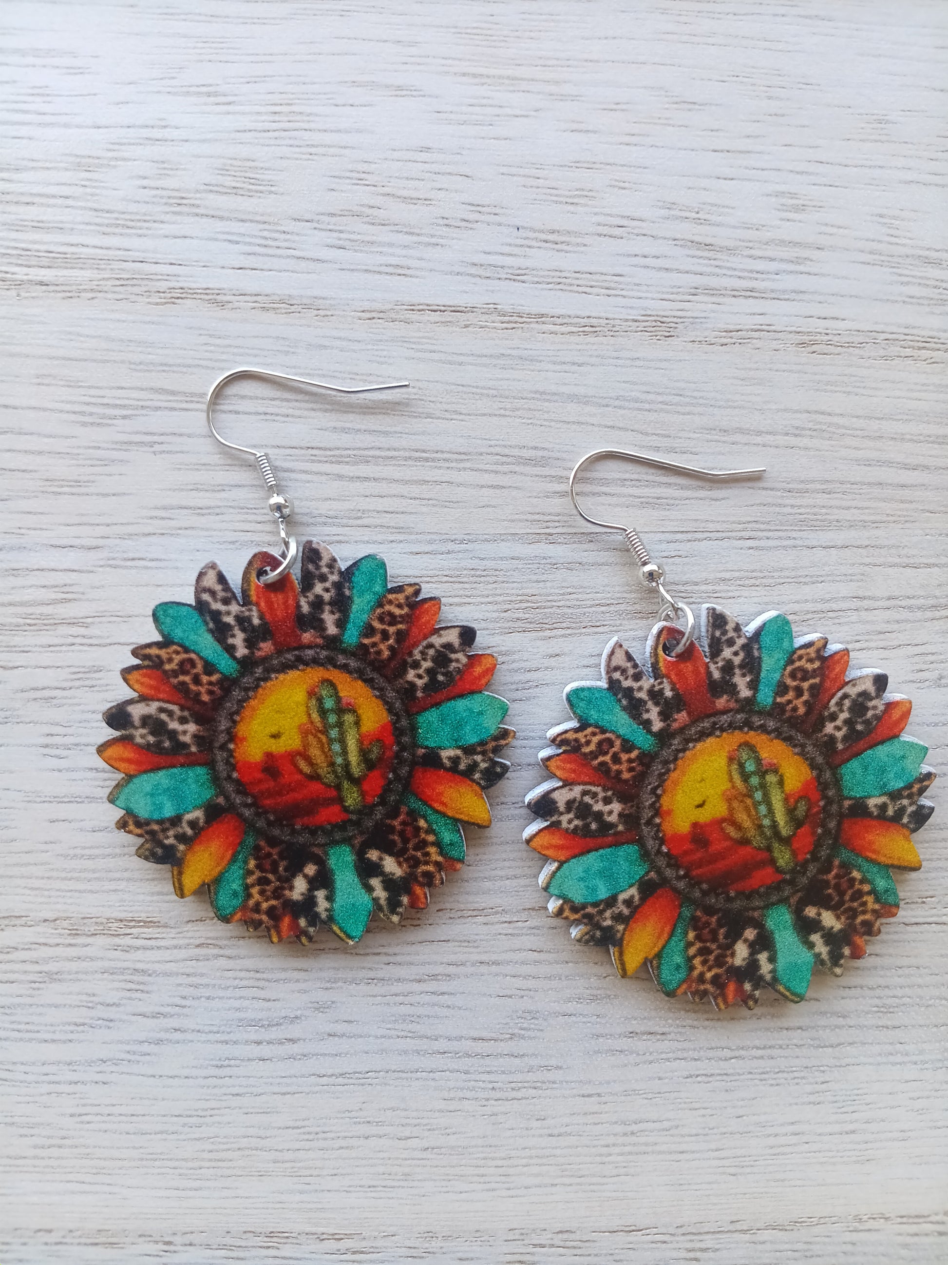 Add a touch of southern charm to your wardrobe with these wooden colorful sunflower cactus earrings! These earrings are a unique and vibrant statement piece. Embrace the beauty of nature and spread positivity wherever you go! Perfect for any occasion and makes a great gift.