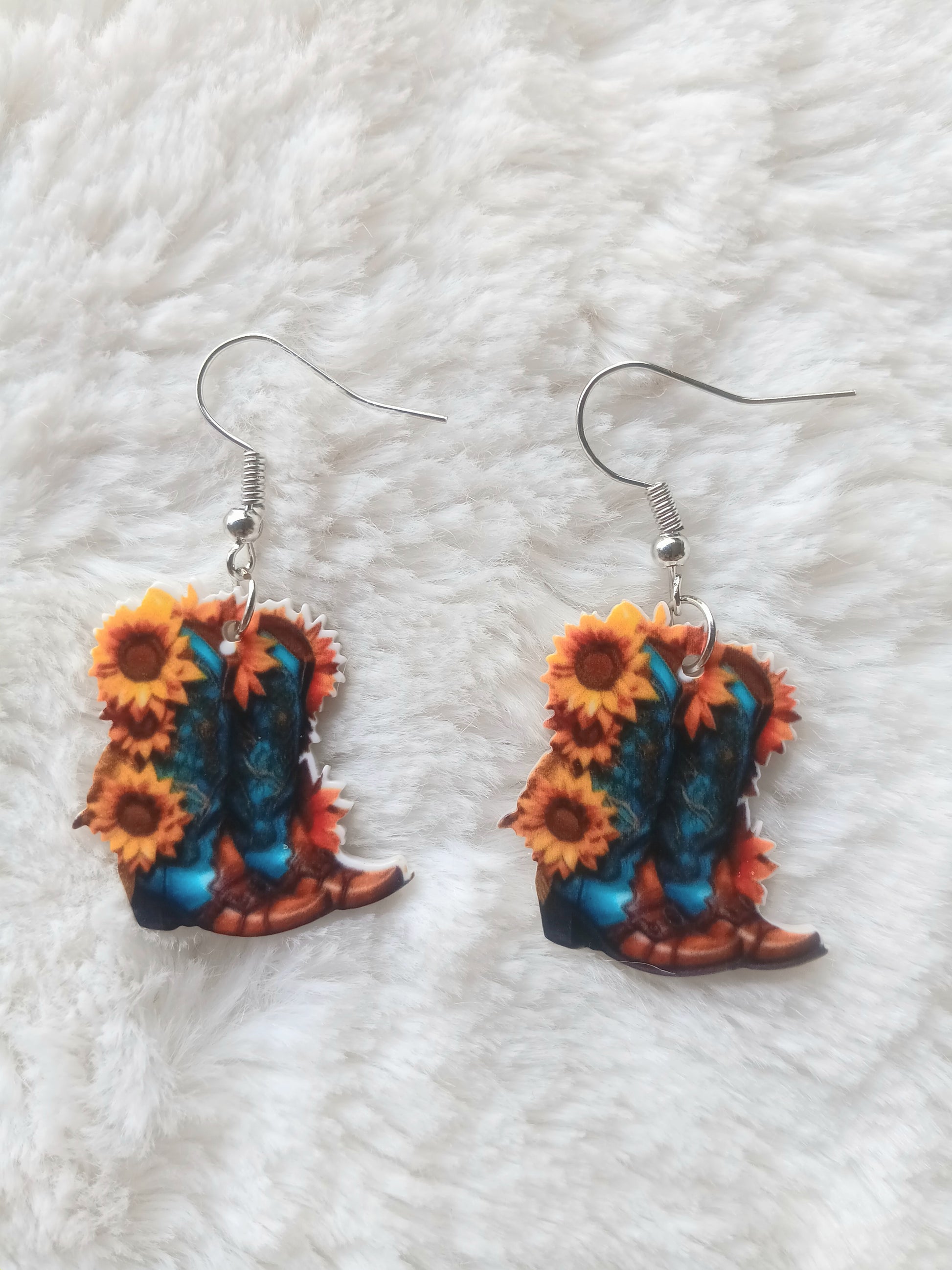 Southwestern Charm Sunflower Cowgirl Boots Earrings