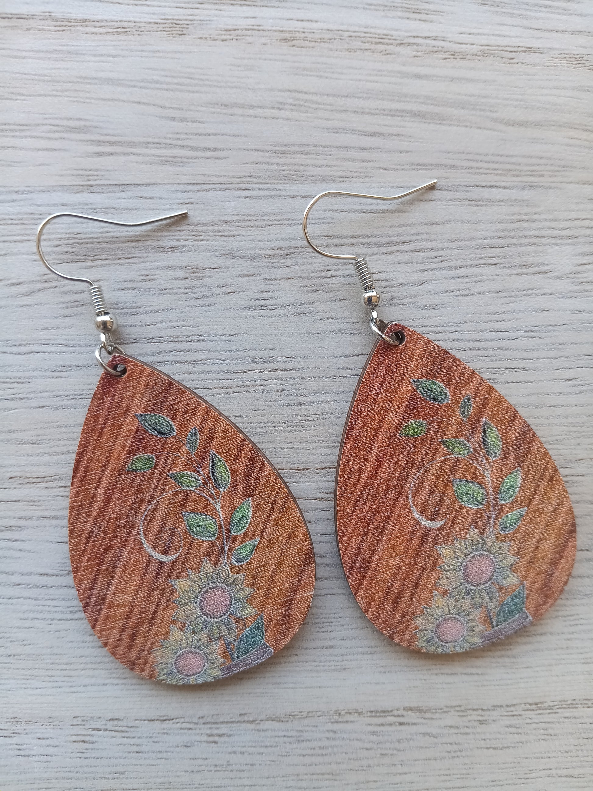 Transform any outfit into a statement with these vintage wooden floral earrings. These earrings will add a touch of vintage romantic nostalgia to your look. Elevate your style and stand out with these uniquely charming earrings.